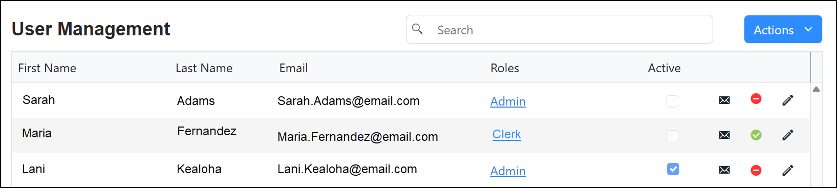 Users with the Add, Remove, or Update Users permissions can manage users. You can also view their roles and permissions.